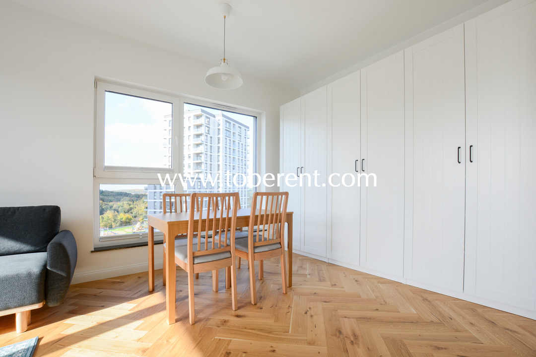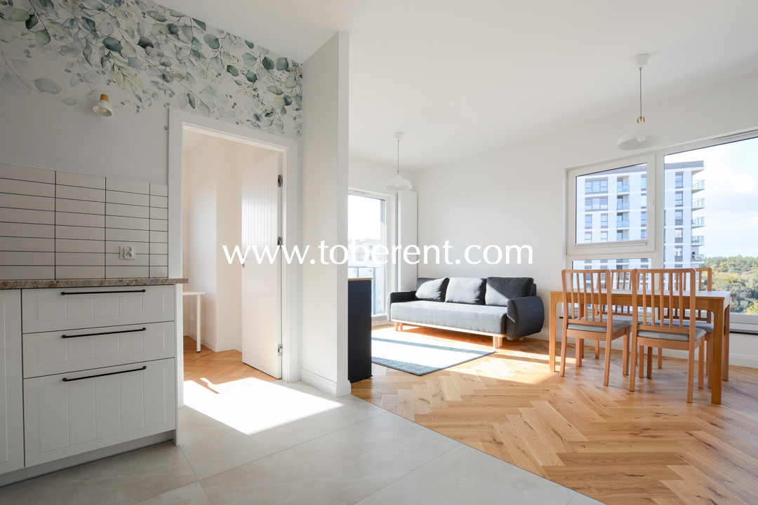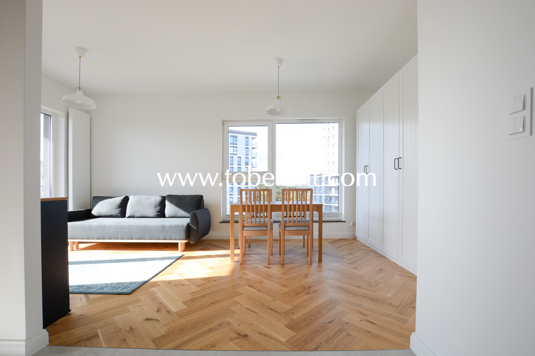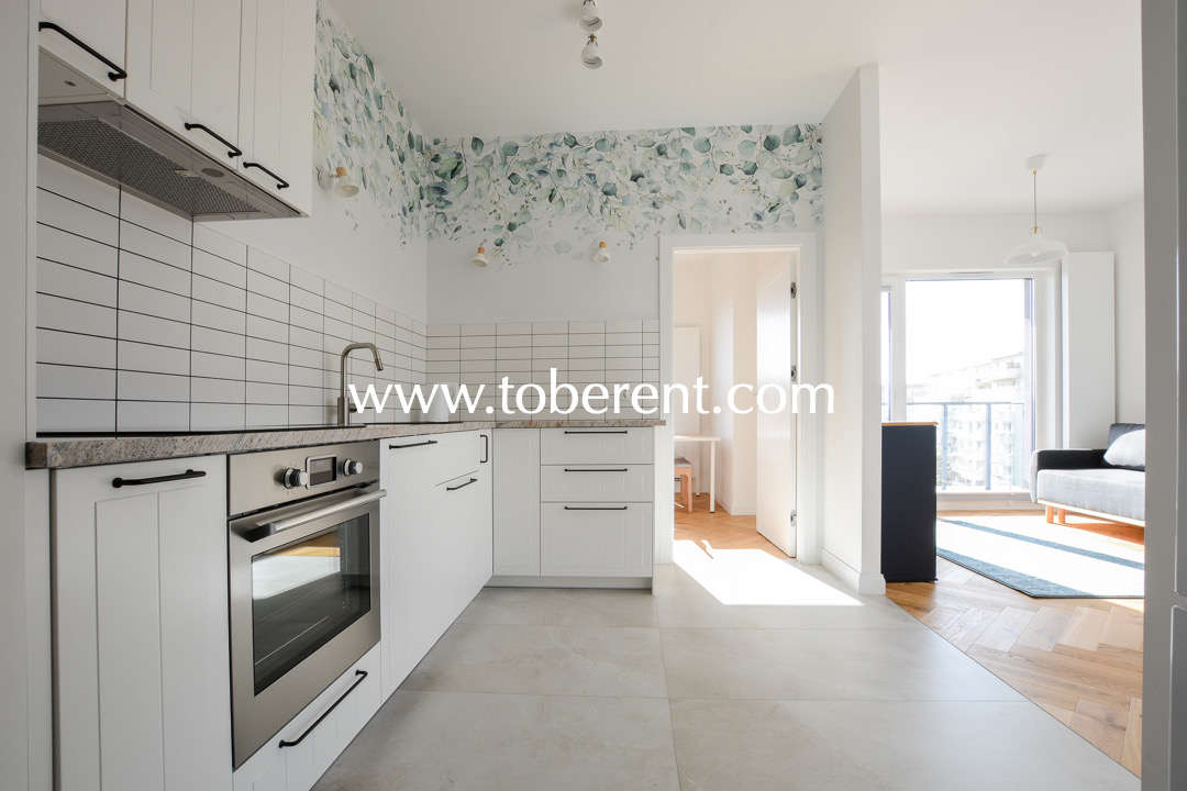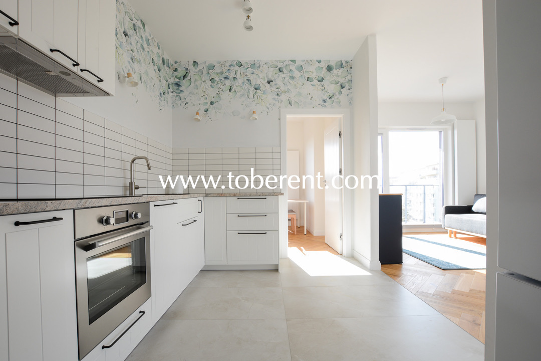 Mieszkanie jest zupełnie nowe, świeżo wykończone, zaprojektowane przez architekta wnętrz.